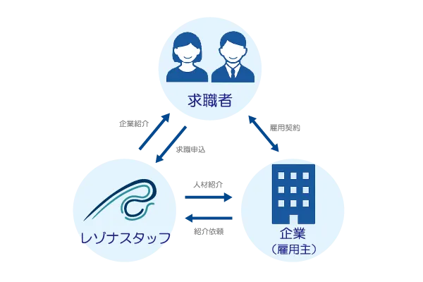 人材紹介とは、レゾナスタッフが「転職・就職を希望する方」と「人材を求める企業」との間をつなぐサービスです。