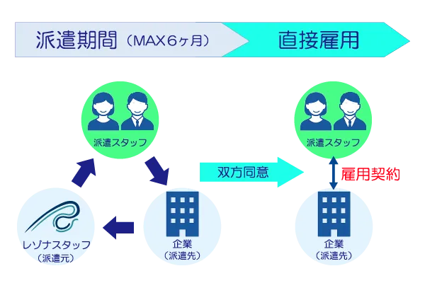 最初の数か月(最長6か月)は派遣スタッフとして企業で働き、
